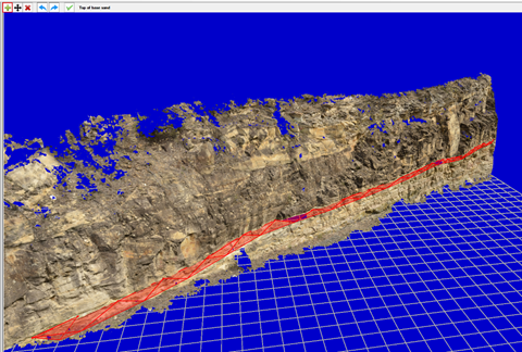 1.       Add one ore more points. Simply click on any point on the outcrop, lines will join each point digitized. Click on the tick(6) icon to complete the boundary or hit Escape on the keyboard. OpenOutcrop has been designed so that clicking in the middle of two existing points will insert a new one between the two.