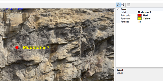 When interpreting outcrop data, we normally come across various points of interest. OpenOutcrop allows you to digitize and label these points.